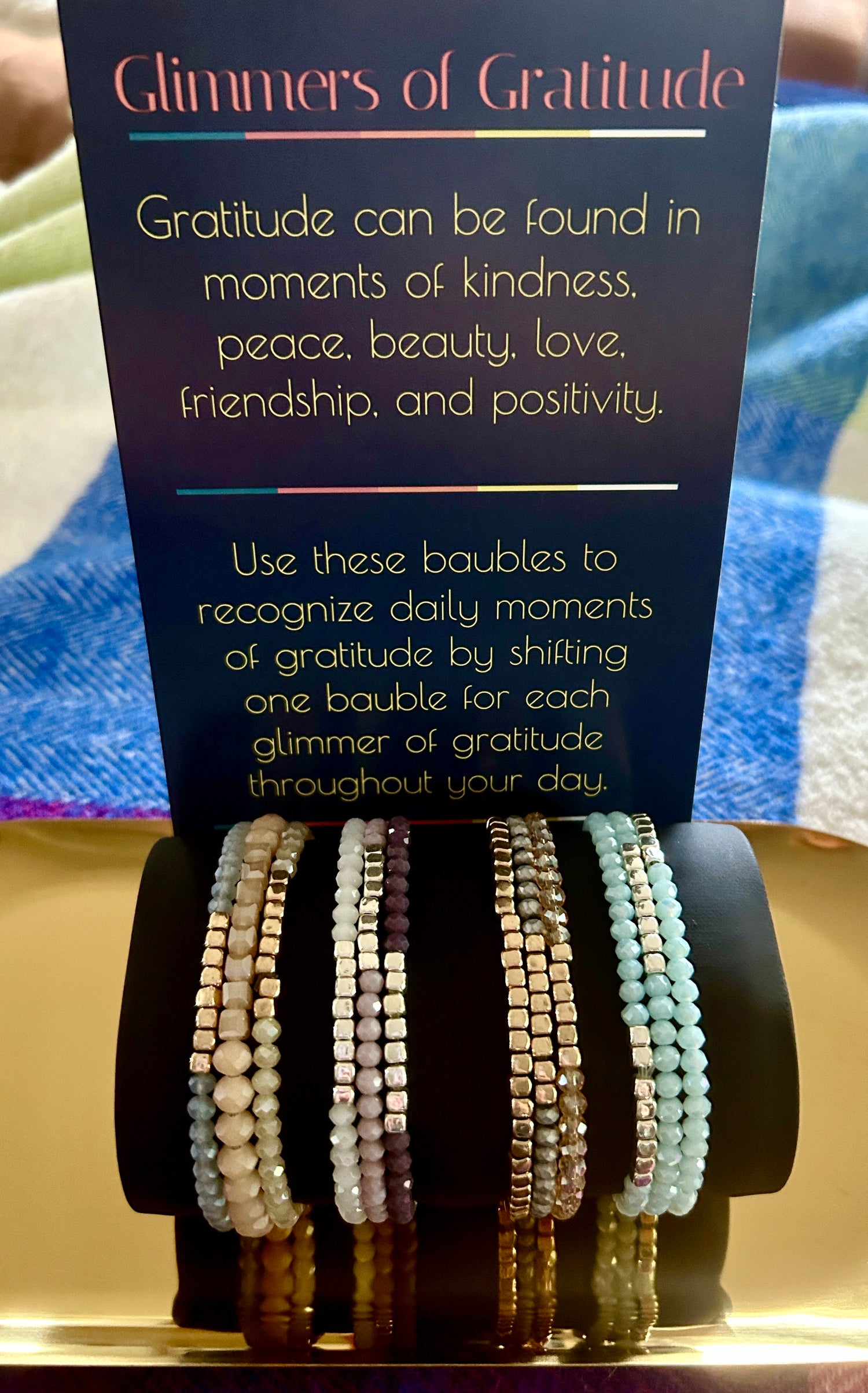 Recognize daily Glimmers of Gratitude by moving a ring or bracelet for each moment of positivity, peace, love, beauty, and kindness throughout your day.